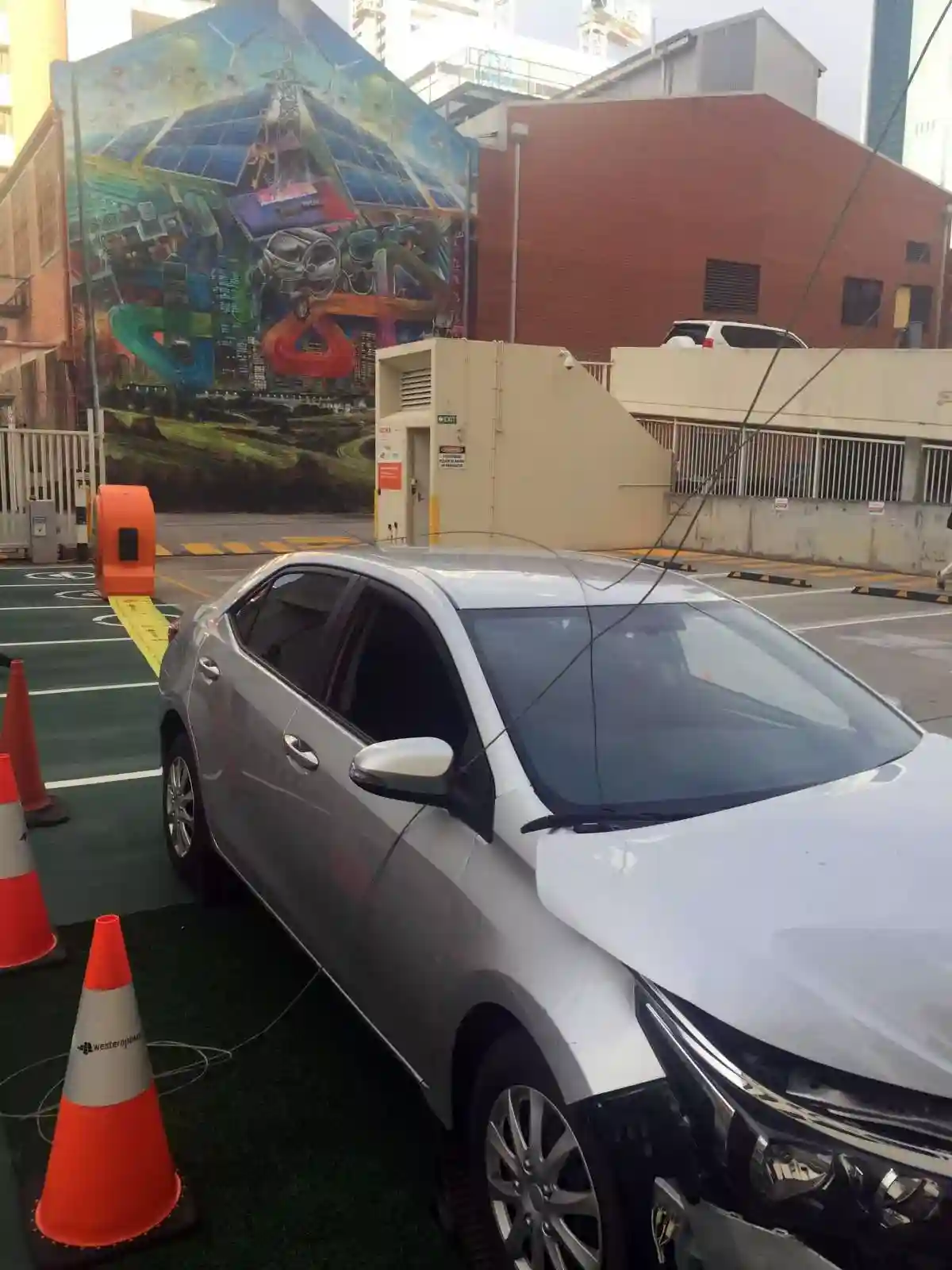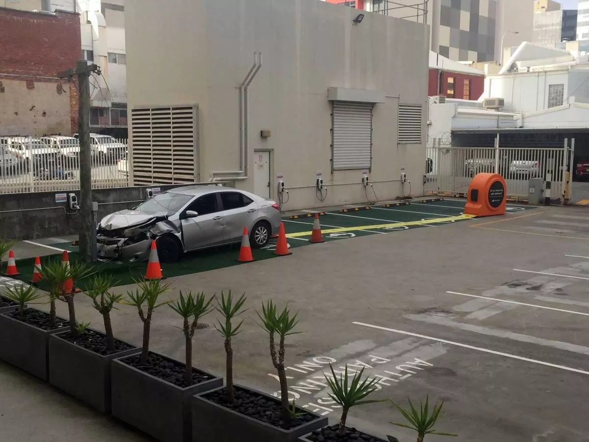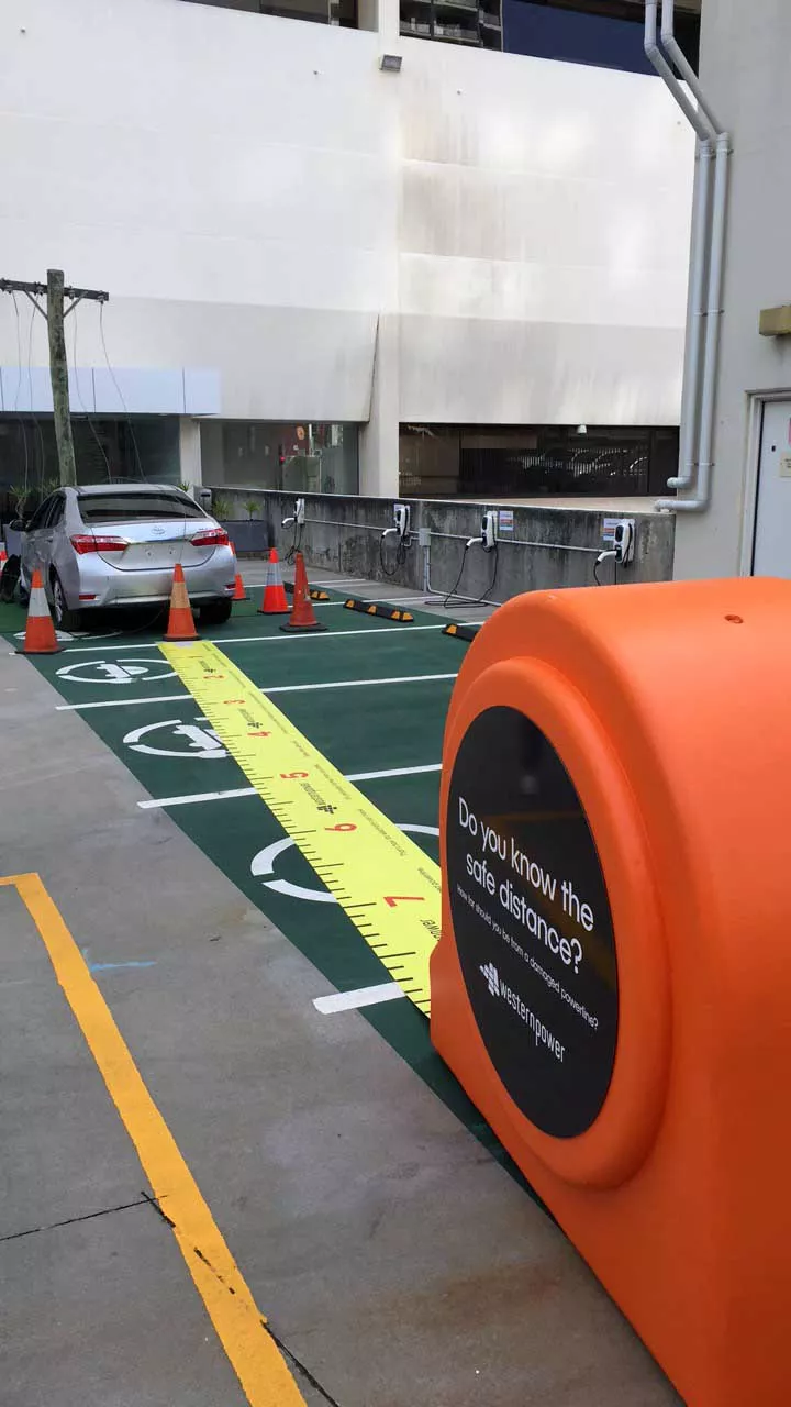 There was custom circular branding on either side measuring 900mm and an 8m floor tape graphic as part of the ‘Make the Safe Call’, a campaign created for electricity utility, Western Power, by The Brand Agency.