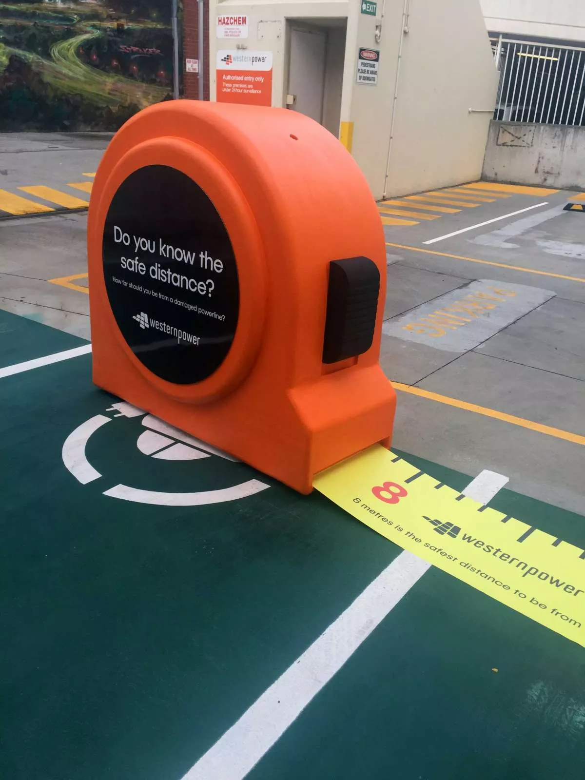 This campaign furthers the narrative on safety around the electrical network by seeking to educate West Australians on the safe distance at which to remain in an electrical emergency which used the Tape Measure to emphasise the safe distance to stay back was 8 metres. The display will be used for TV Commercials as well as being on show at Shopping Centres and other Public Venues.