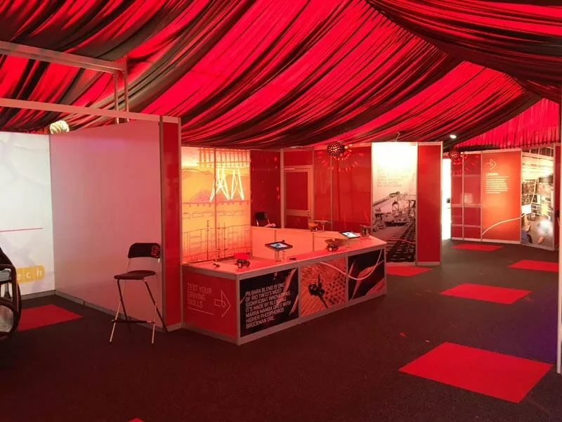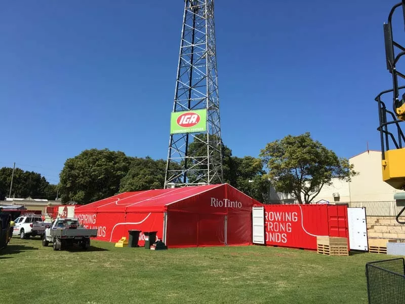 Barrett Exhibition Group were commissioned by the Brand Agency to project manage, manufacture, print, install and remove a custom printed marquee and 4 x custom fitted out shipping containers as well as an interactive “spinning heads display” within a 1,750sqm area.