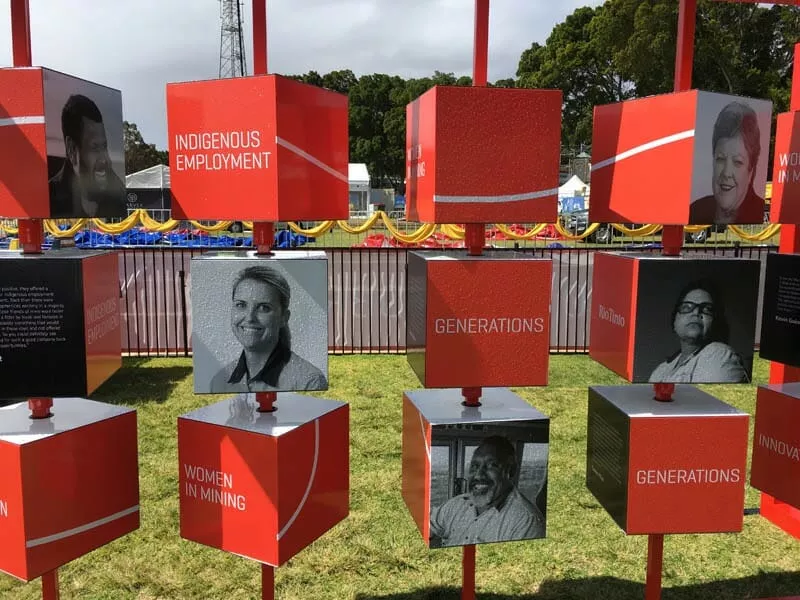 Designed as an educational and interactive exhibition, Royal Show patrons were able to engage with and learn about Rio Tinto’s history. The display had six different areas, each offering very different experiences.